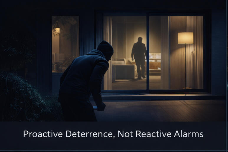 Traditional security systems alert owners after a breach has already occurred. Sentra takes a fundamentally different approach by focusing on pre-entry deterrence. By responding immediately to detected motion with believable signs of active occupancy, Sentra increases perceived risk and disrupts intent before an intruder commits to entry—often preventing the incident entirely.