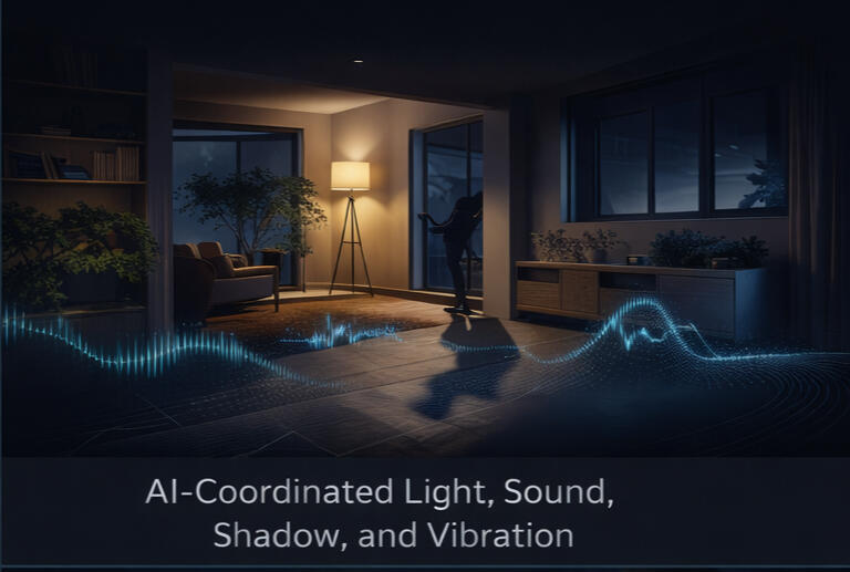 Our technology is designed to deter threats before entry by creating believable signs of human or K9 presence using coordinated AI, lighting, sound, vibration, and shadow projection—without relying on traditional alarms or constant monitoring